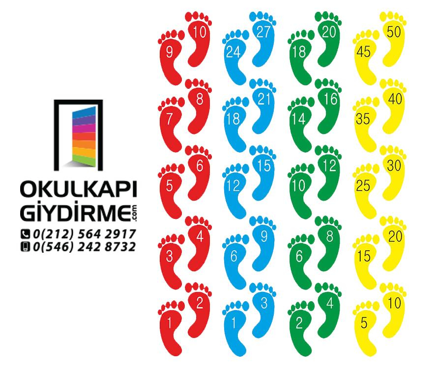 Ayak izleri folyo üzeri dijital baskı ve kesilmiş şekilde gönderilir.